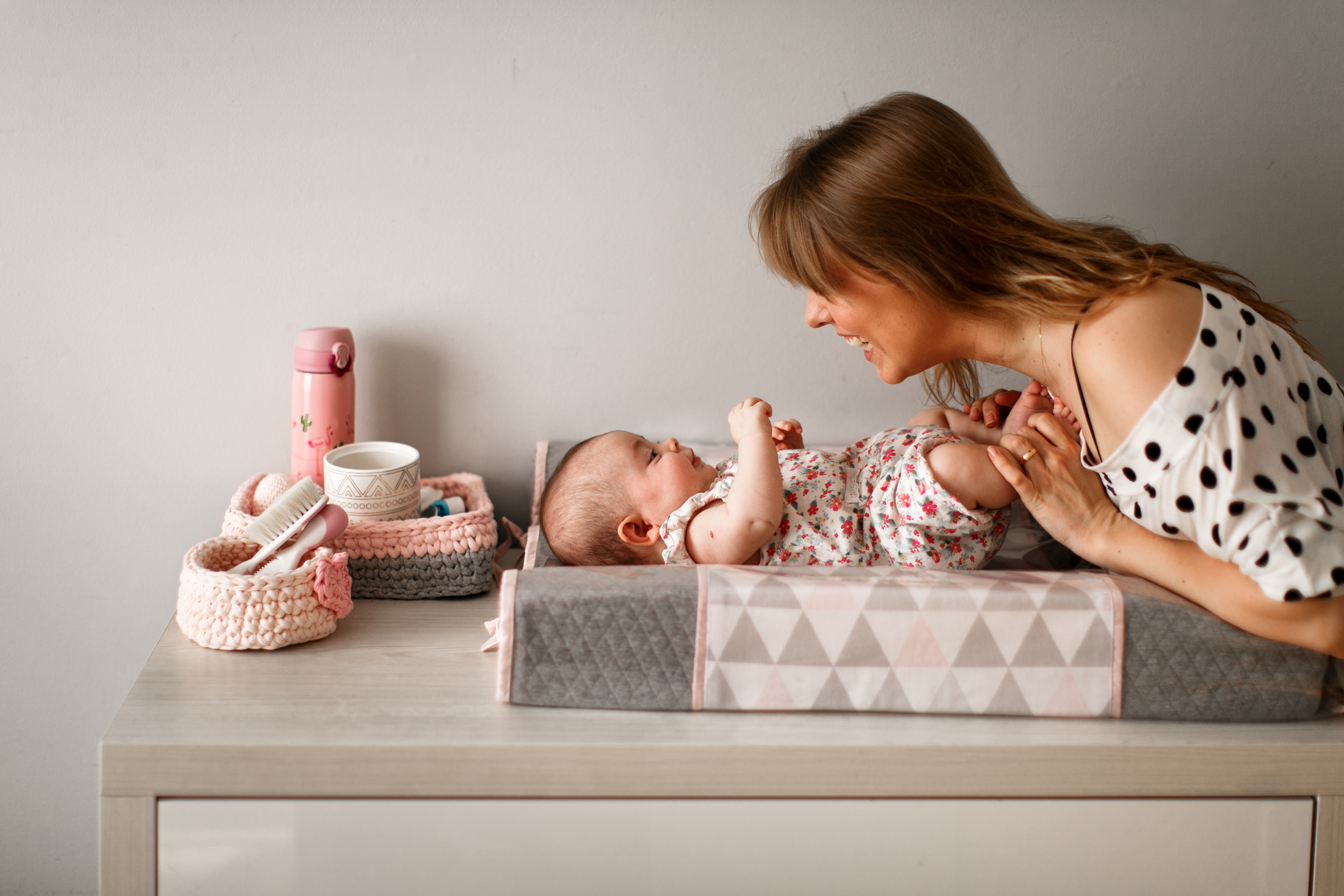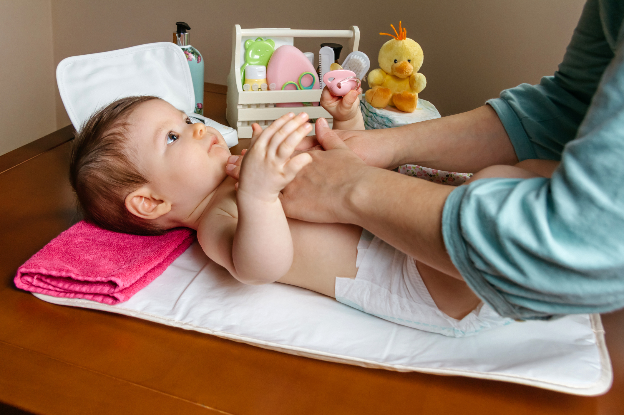 Nos primeiros meses do bebê, você vai trocar muitas fraldas por dia! Para tornar esse momento mais prático, o ideal é manter os produtos necessários para a higiene do bebê juntos.